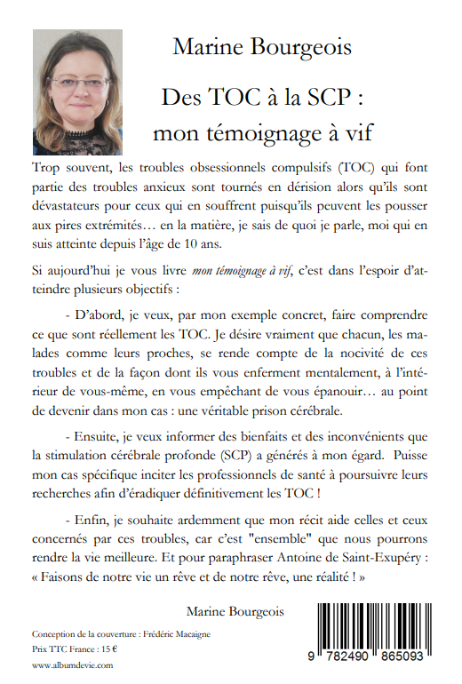 Marine Bourgeois, l’auteure de ce livre témoignage, oui. La jeune trentenaire en souffre depuis qu’elle a une dizaine d’années. En juin 2019, la jeune femme a bénéficié d’une intervention chirurgicale encore assez rare en France consistant en l’implantation d’électrodes dans son cerveau dans le but d’effectuer une SCP (stimulation cérébrale profonde).